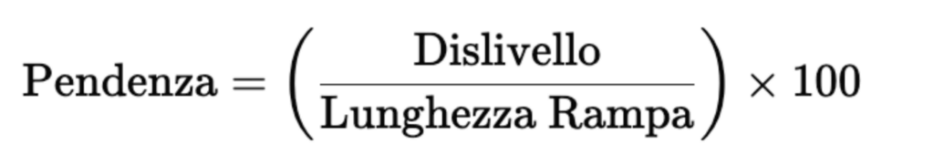 DISLIVELLO MASSIMO = LUNGHEZZA DELLA RAMPA X (PENDENZA / 100)
