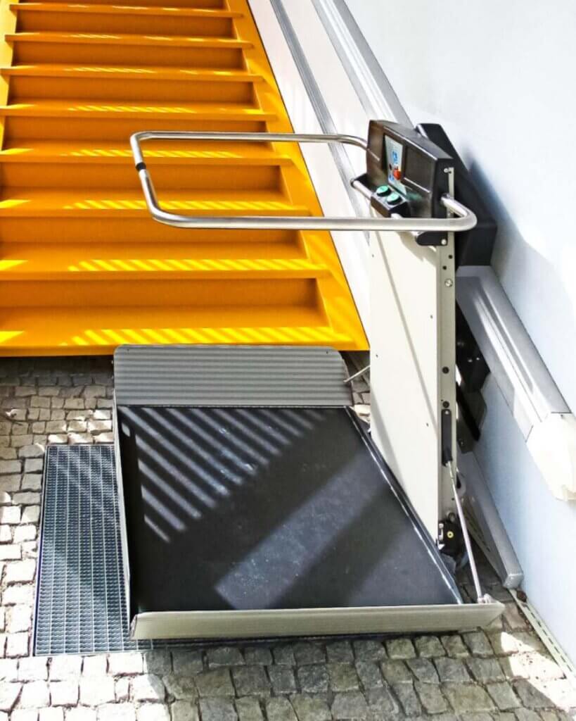 2) Piattaforme elevatrici: Una soluzione versatile che consente di superare dislivelli importanti con facilità. Le piattaforme elevatrici sono compatte e possono essere installate sia all’interno che all’esterno dell’abitazione, integrandosi perfettamente con l’ambiente domestico.